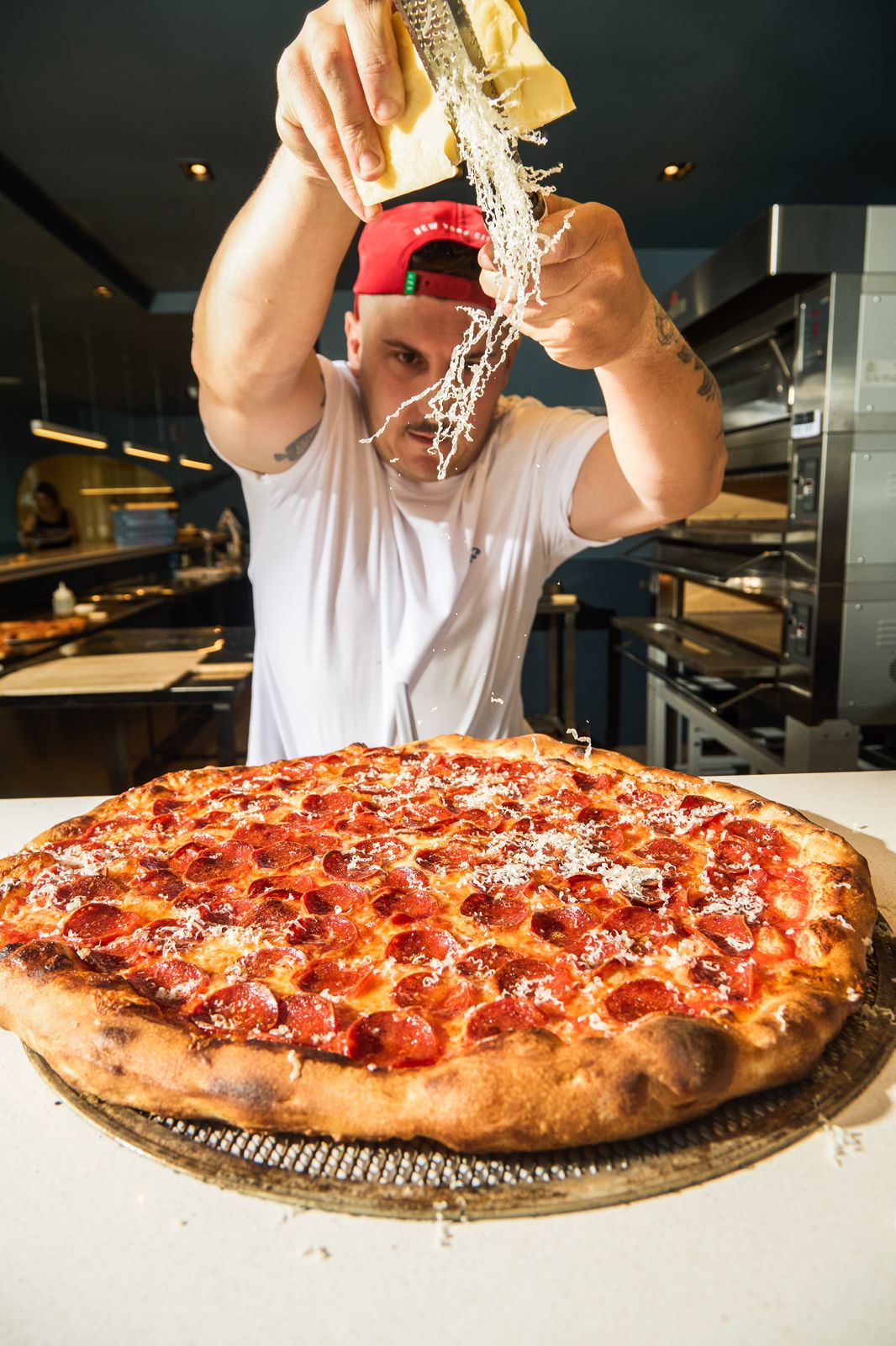 Había que darle al local la impronta de la marca, es por eso que diseñamos cada uno de los puntos de contacto del cliente con el restaurante con Kalis Pizza.